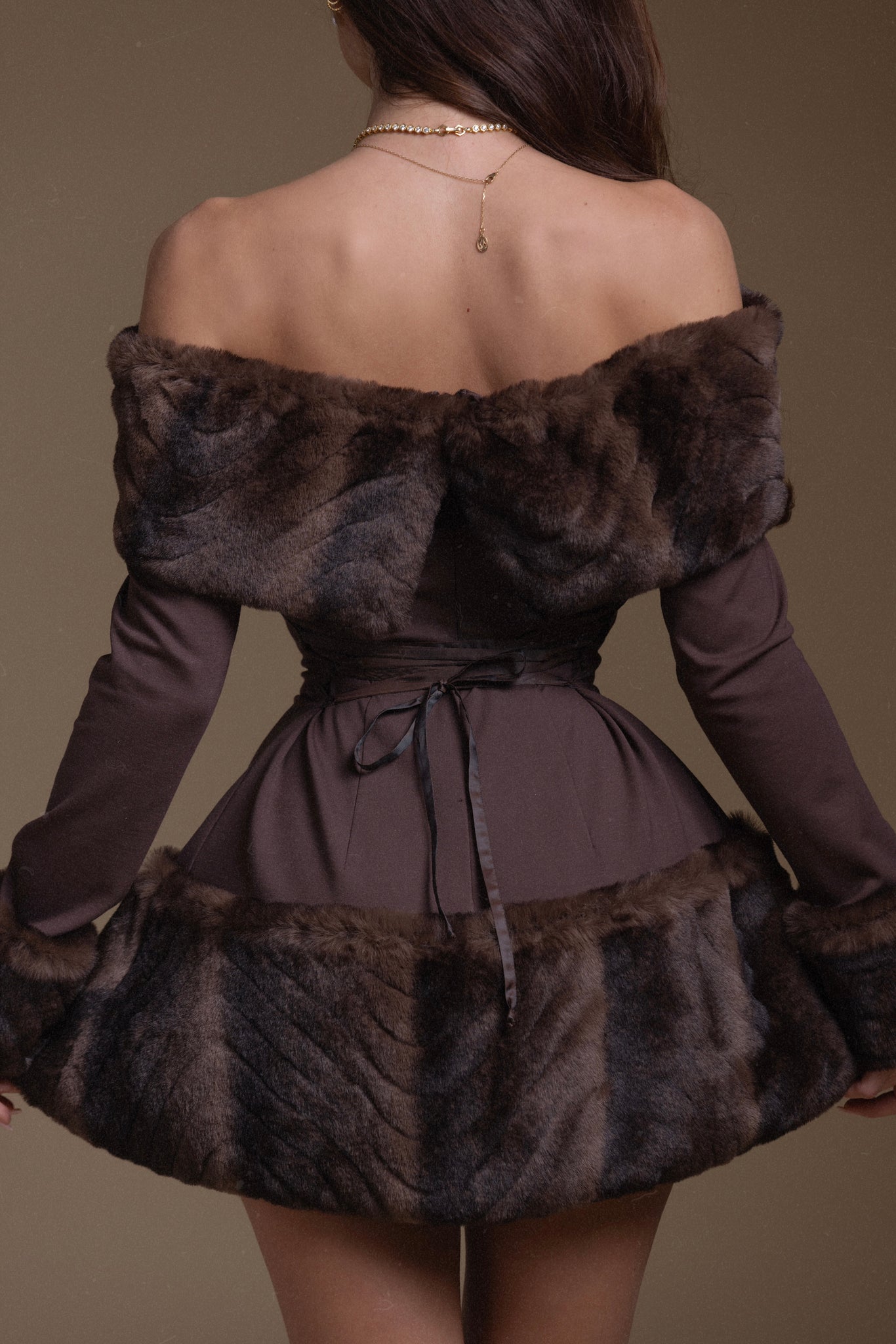 - Luxurious faux fur trim along neckline, cuffs, and hem