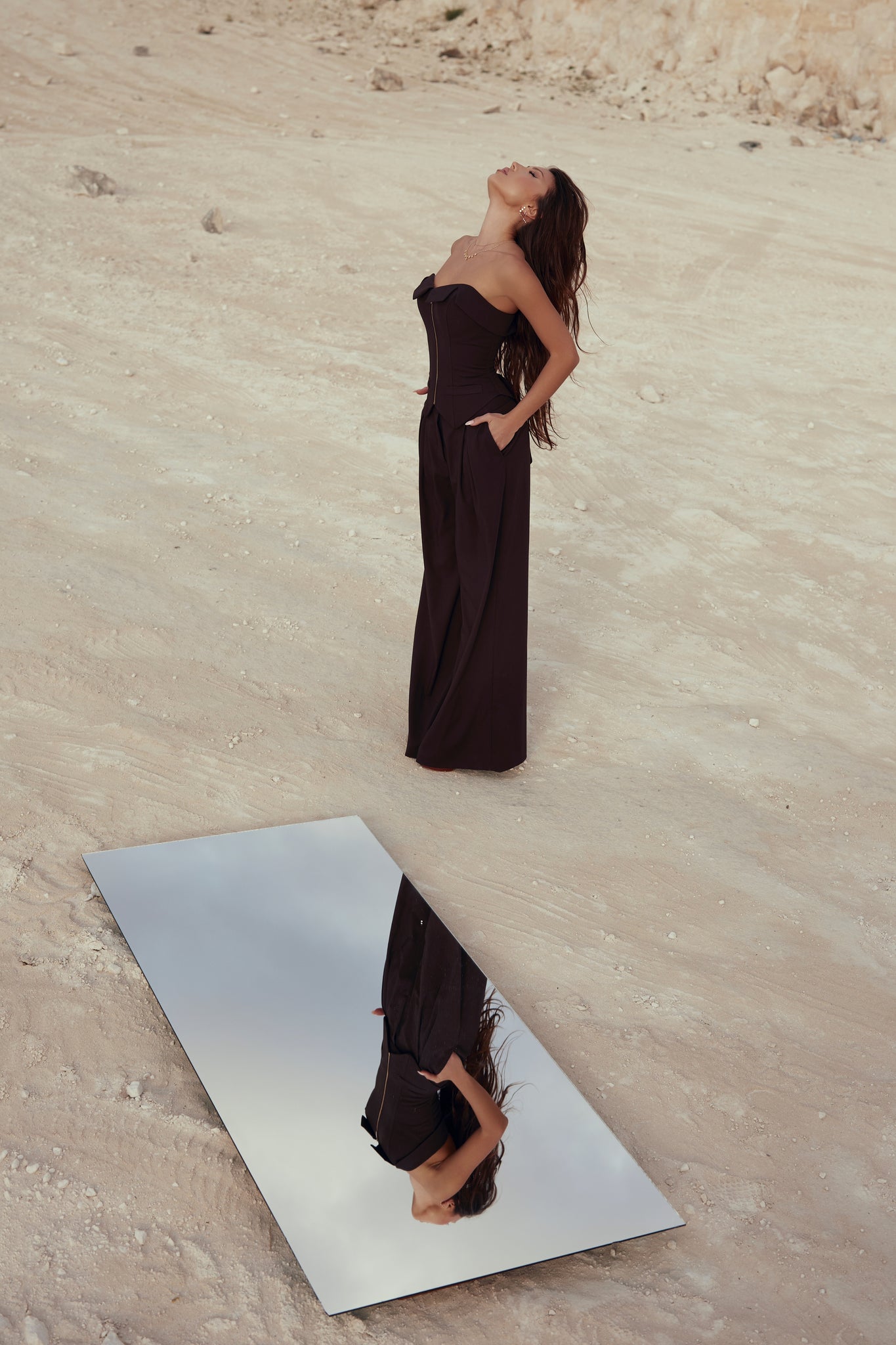 - Wide-leg silhouette for elongated proportions